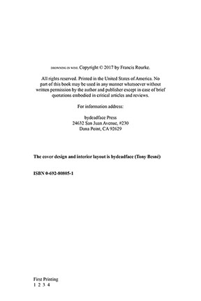 Drowning In Wine Near The Waters Of Elsinore is a description of what it's like to live on the other side of the California Ortega's in a curious little town called Lake Elsinore. This factual collection of writing reads as a sobering truth that in a town like Elsinore, loneliness and companionship can exist simultaneously, emotional depravity and financial woe go hand-in-hand, dead-end jobs lead to social sexscapades, and seeing how many bad poems it takes to get drunk is apparently a thing. These unique scenarios and more are what drives Francis to write with a perception that can only be described in his own words: "Save me from this place, this awful place, this vagabond's delight, the Elsinorean trite. Misery holds my hand explaining we are friends. But no! Elsinore is death! Remember where it's name derives from and see the real tragedy. Death lives on this lake!"